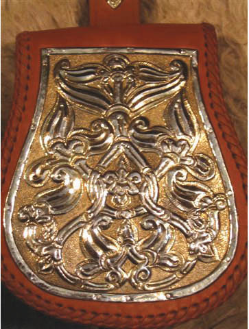 minden lemezhez kérhető szíjvég és díszítő veret FEHÉREGYHÁZI TARSOLYLEMEZbőrrel fonott tarsolyon BÁRÁNDI TARSOLYLEMEZ ![]() barna fonott bőr tarsolytáskán | ![]() |