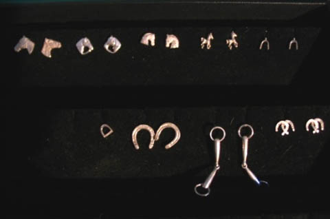 "NYAKKENDŐTŰKlovas nyakkendő csipeszek aranyozva EZÜST FÜLBEVALÓK ![]() ezüstből készült fülbevalókkülönféle “lovas” mintázatokkal |