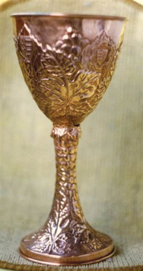 MAGYAR KORONA MÁSOLATa visegrádi Fellegvárban látható, aranyozott színesfémből készült, miniatűr festett zománcképekkel KÖZÉPKORI DÍSZSERLEG ![]() szőlőleveles serleg, középkori címerekkel |