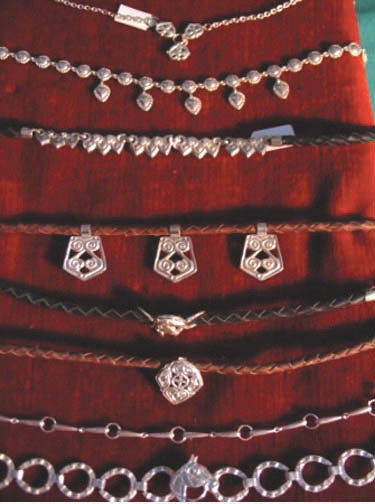 "EZÜST NYAKLÁNCbőrfonatos ékszerek ezüst díszítéssel LÉZSIÁS, AZAZ PÉNZESLÁNC ![]() eredeti múlt századi pénzekkel díszítve, ezüst foglalatban, drágakövekkel. |