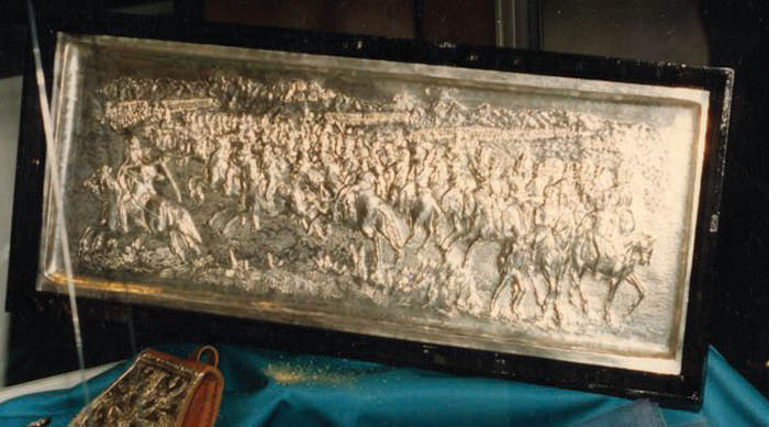 ARANYOZOTT SERLEGAranyozott nagy méretű serleg hun-kori díszítéssel EZÜST KÉP EGYEDI MEGRENDELÉSRE ![]() Magyar Huszárok Travisióban című festmény alapján készült. A kép csatajelenetet ábrázol, a huszárok felszerelése 1848 előtti rendszeresítésű. |