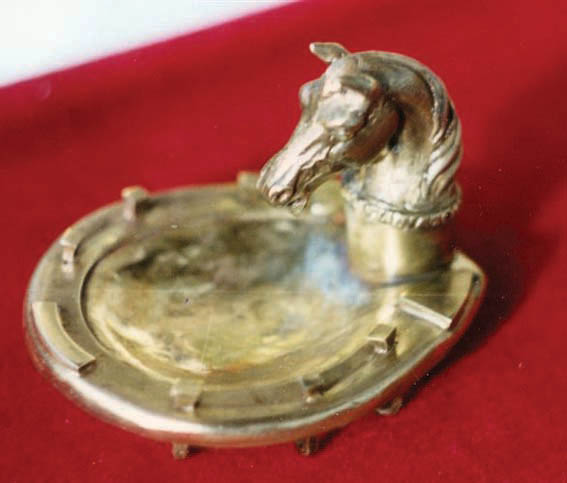 TISZTI KANTÁRA Magyar Köztársaság Díszegysége részére készültek a tiszti huszár nagykantár fém alkatrészei. LÓFEJES HAMUTARTÓ ![]() lábai a megrendelő saját lova által koptatott patkószögeiből készültek | ![]() | |||||||||||||||